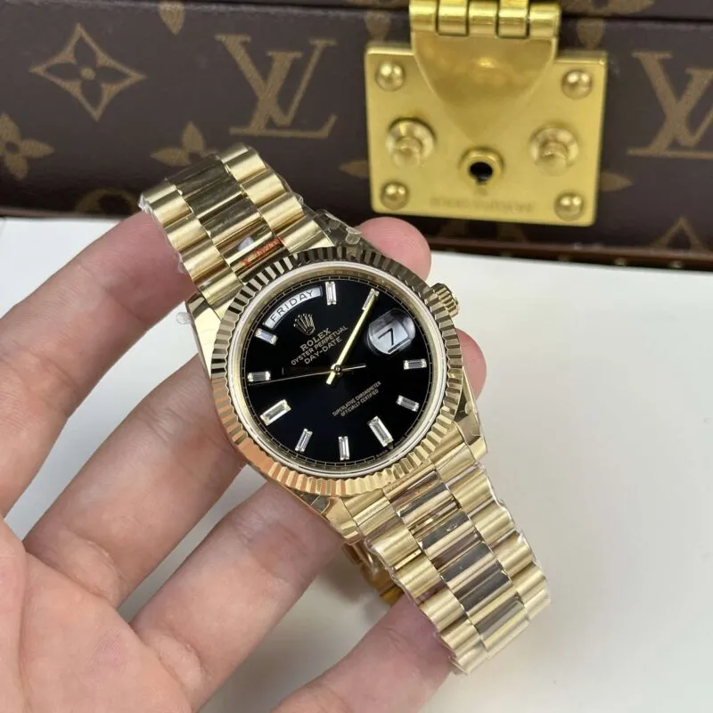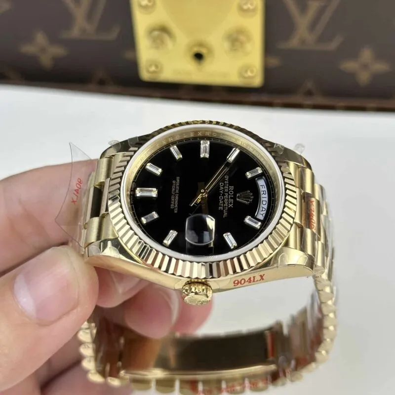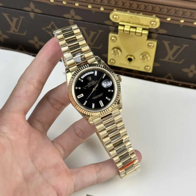 ROLEX DAY-DATE WATCH BLACK DIAL REFINED STONE Automatic Mechanical Watch