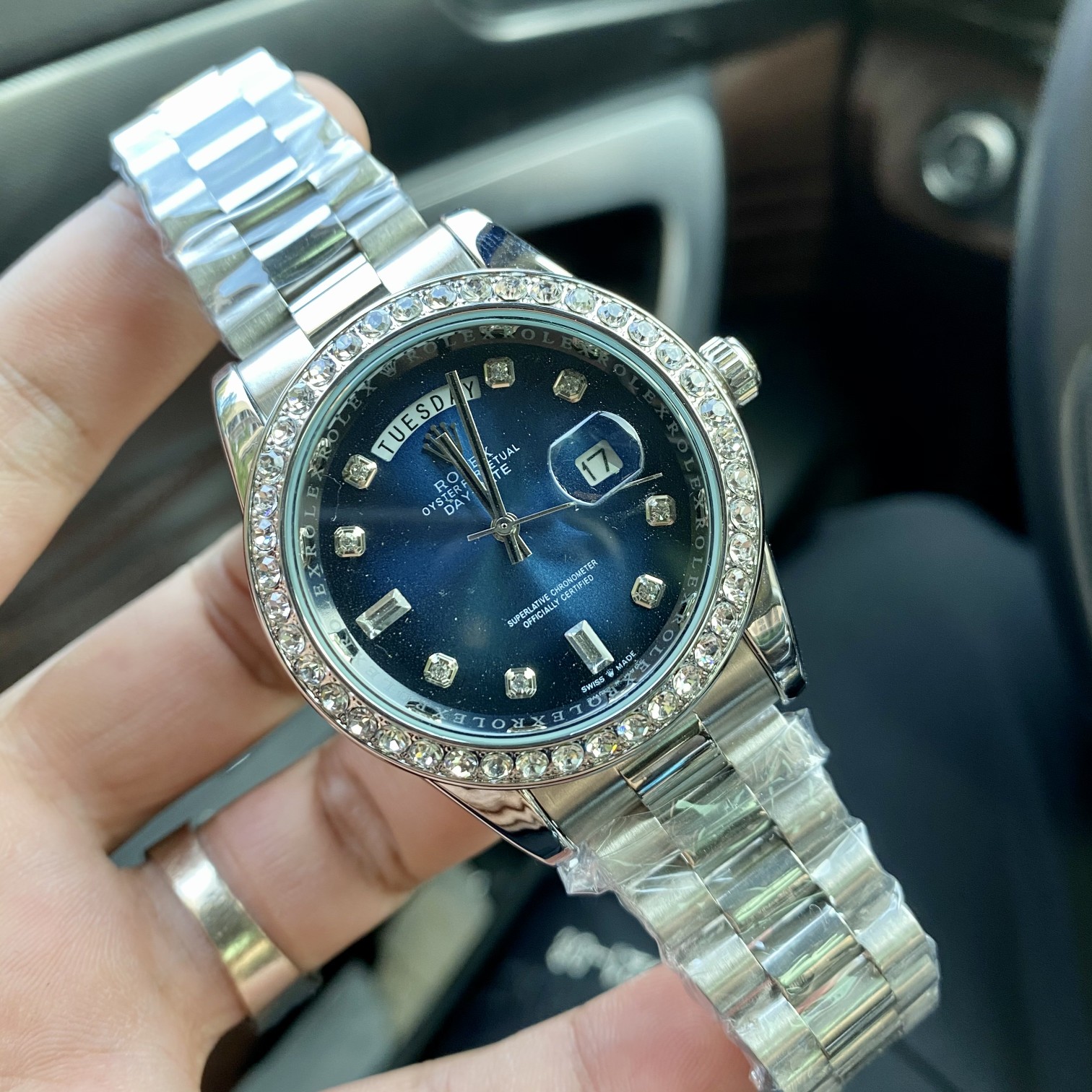 DAY-DATE SILVER DIAL DIAMOND DIAL Automatic Mechanical Watch
