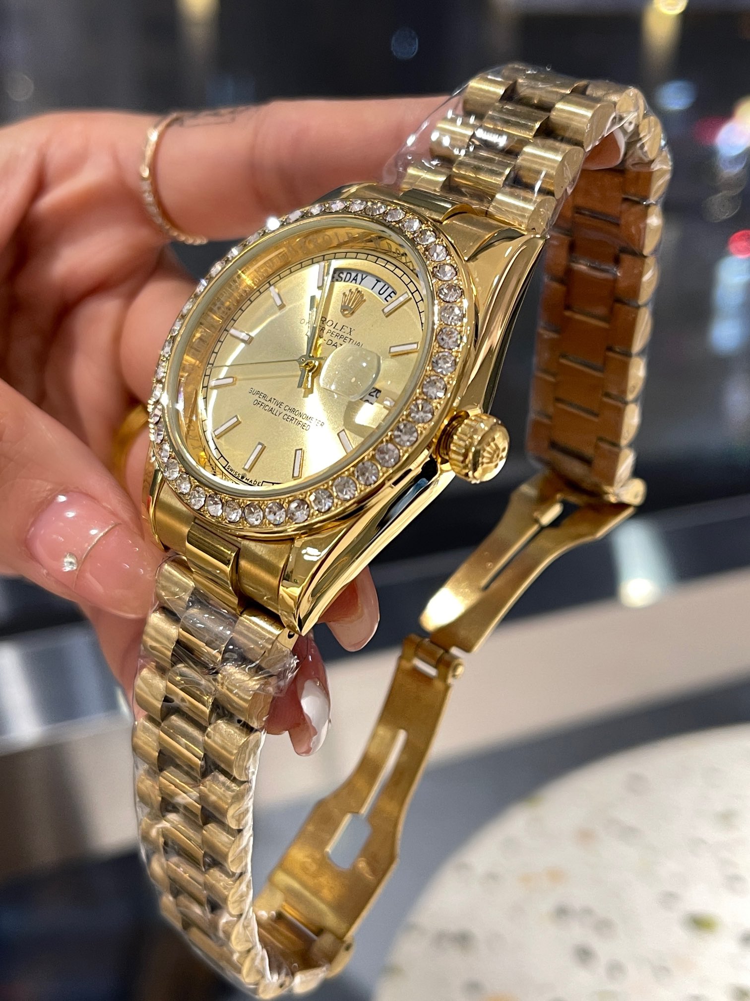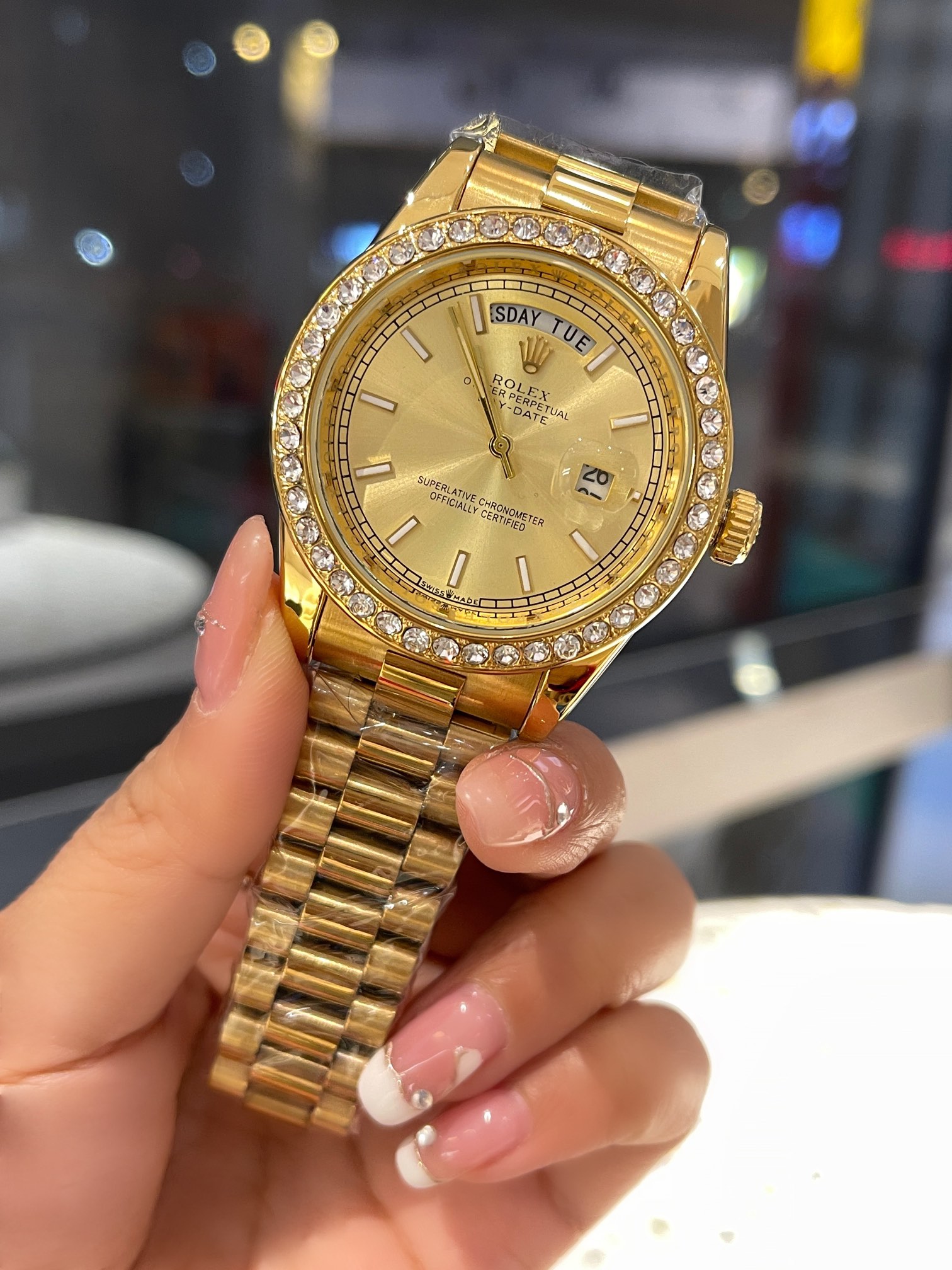 DAY-DATE GOLD DIAL DIAMOND DIAL Automatic Mechanical Watch