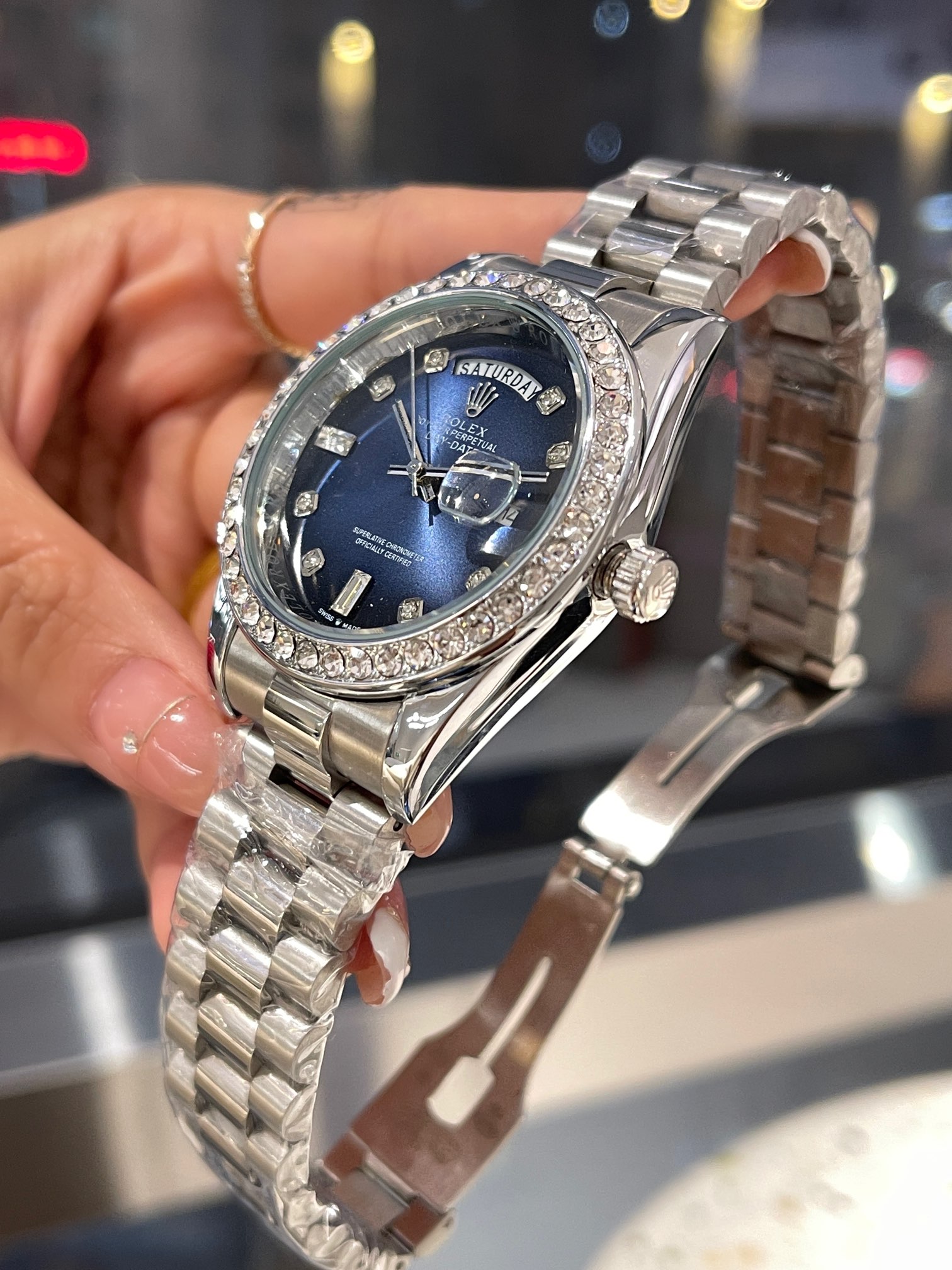 Try on the Rolex Day-Date and experience the pinnacle of luxury, elegance, and precise timekeeping in a genuine masterpiece watch.